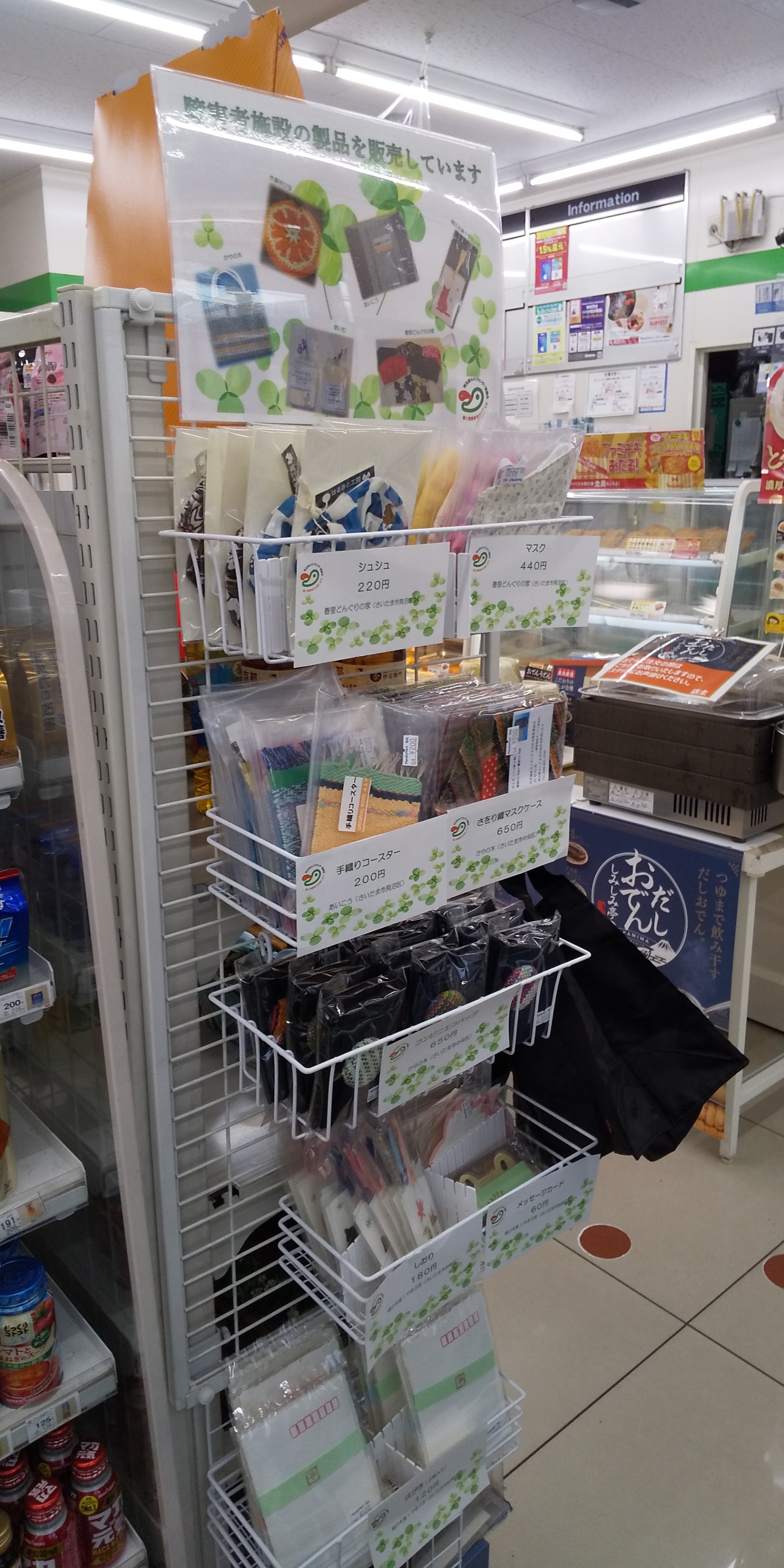 また、現在は日用雑貨商品のみですが、今後は消費期限の長い食品の販売や店舗前駐車場でのイベント販売も検討しているとのことでした。(後日このイベント販売のお誘いがありましたが、日程があう事業所がなく、今回は参加できませんでした。)