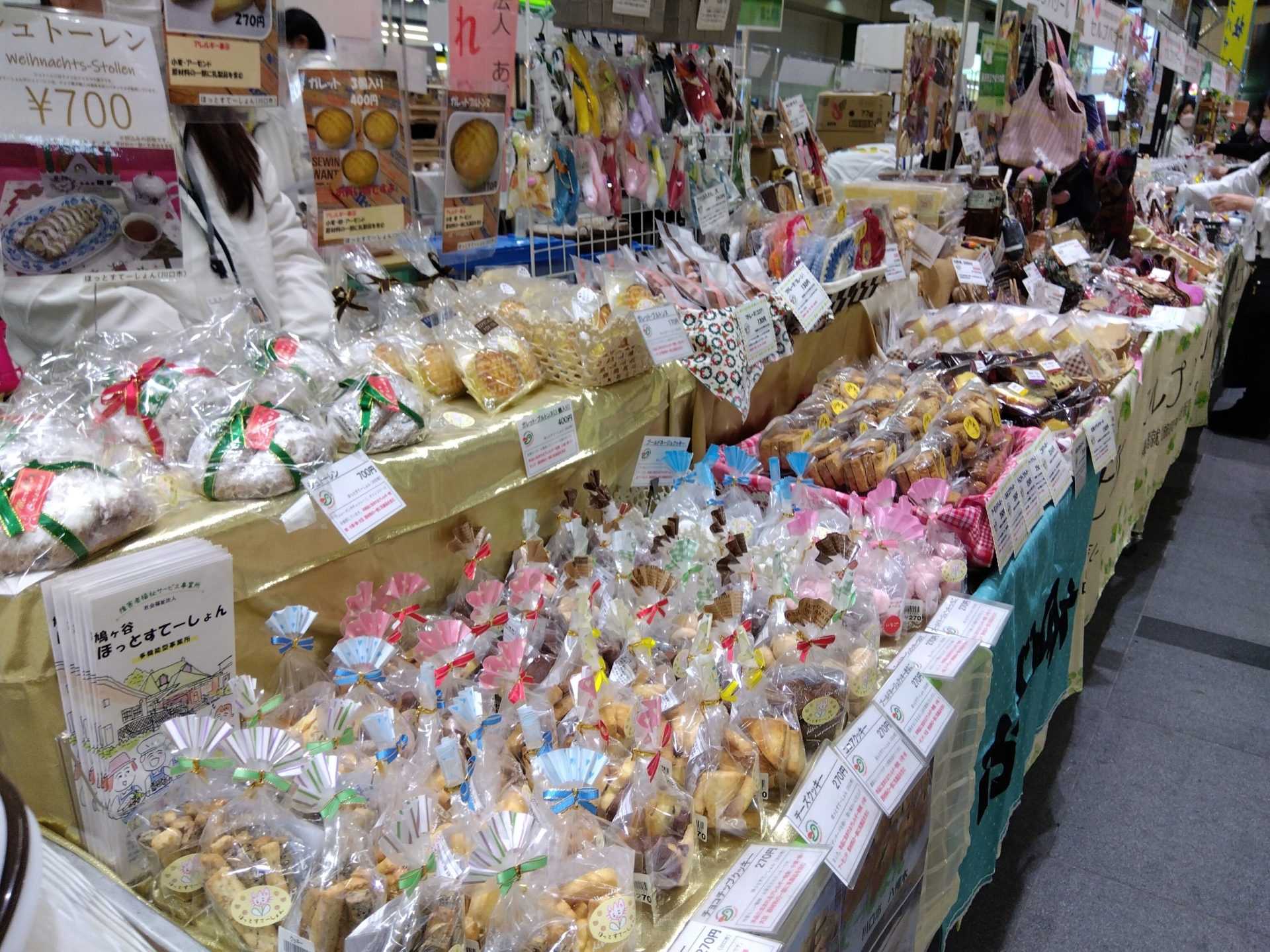 令和4年12月13日(火)から15日?(木)までの3日間、今年もセルプバザールin大宮駅コンコースが開催されました。今年は38事業所が参加し、昨年度より6事業所も増え、大変にぎやかな商品揃えとなりました。