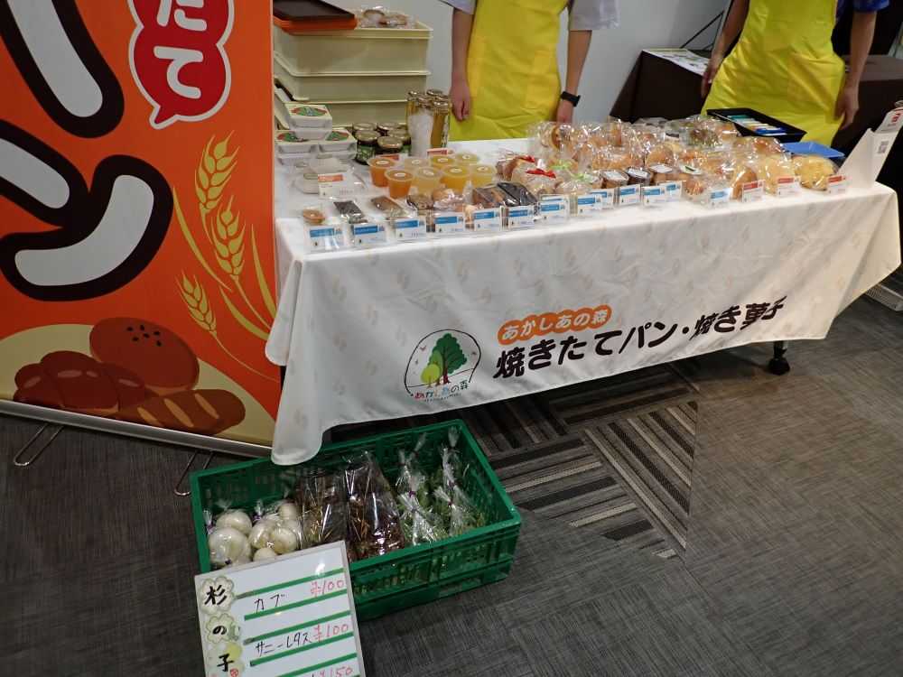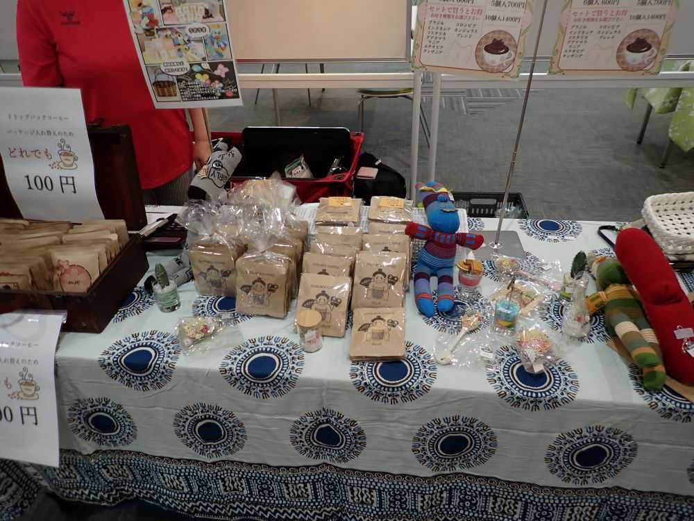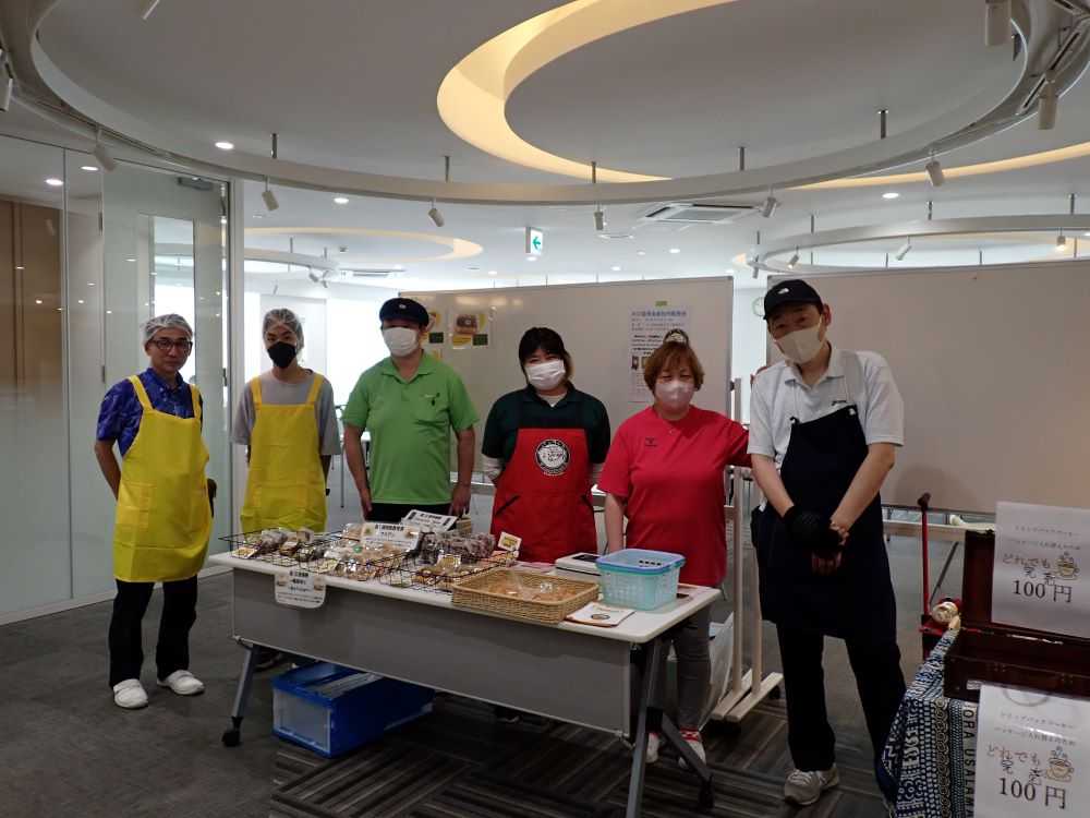 今回は、パンラッコ(川口市)、シゴプラッ?戸塚安行(川口市)、どすこい就労支援(八潮市)、あかしあの森(さいたま市)の4事業所が参加しました。パンラッコはパンと焼き菓子を、シゴプラッ?戸塚安行はぷりん(プレーン、抹茶、ほうじ茶)を販売しました。どすこい就労支援はコーヒー(ドリップ、豆、粉)と雑貨を、あかしあの森はパンとはちみつと野菜等を販売しました。