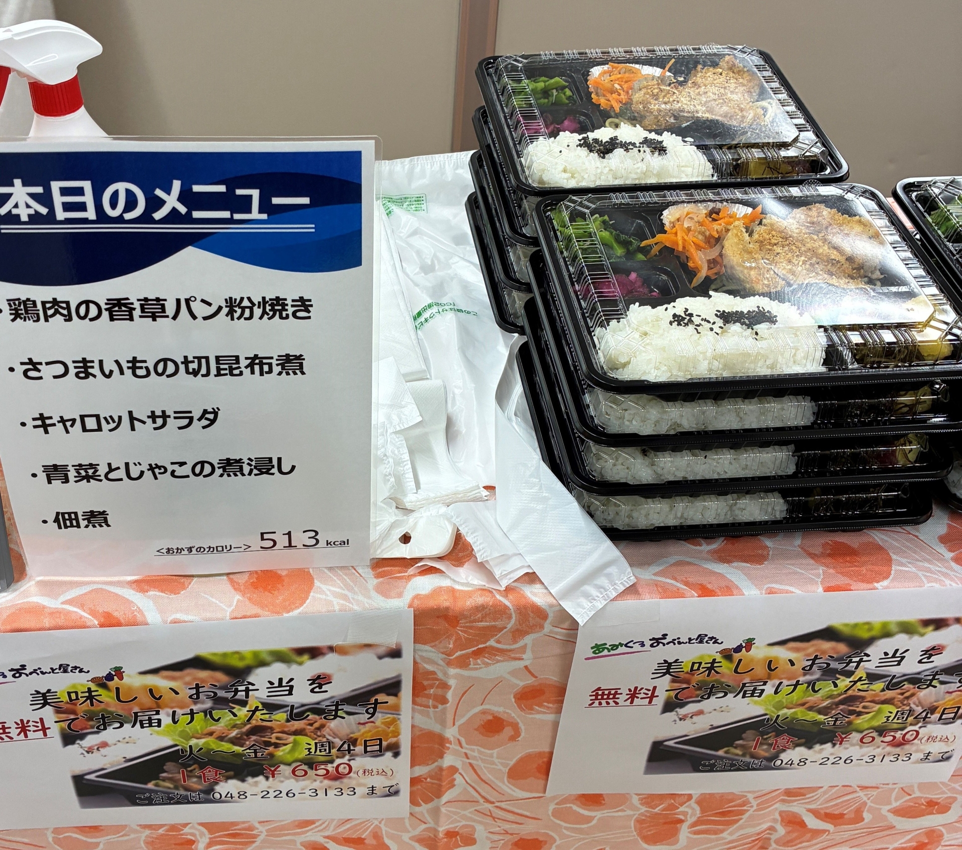 今回は、あみくるおべんと屋さん(川口市)、ほっとすてーしょん(川口市)、Melth東川口(川口市)、FOREST東浦和(さいたま市)の4事業所が参加しました。あみくるおべんと屋さんは日替わり弁当、ほっとすてーしょんはパンや焼き菓子を販売しました。Melth東川口はコーヒーを、FOREST東浦和はスコーンを販売しました。