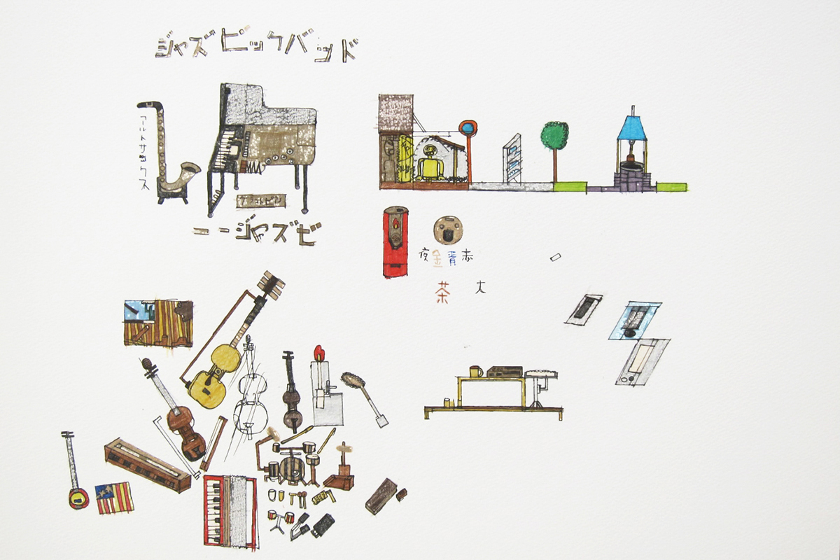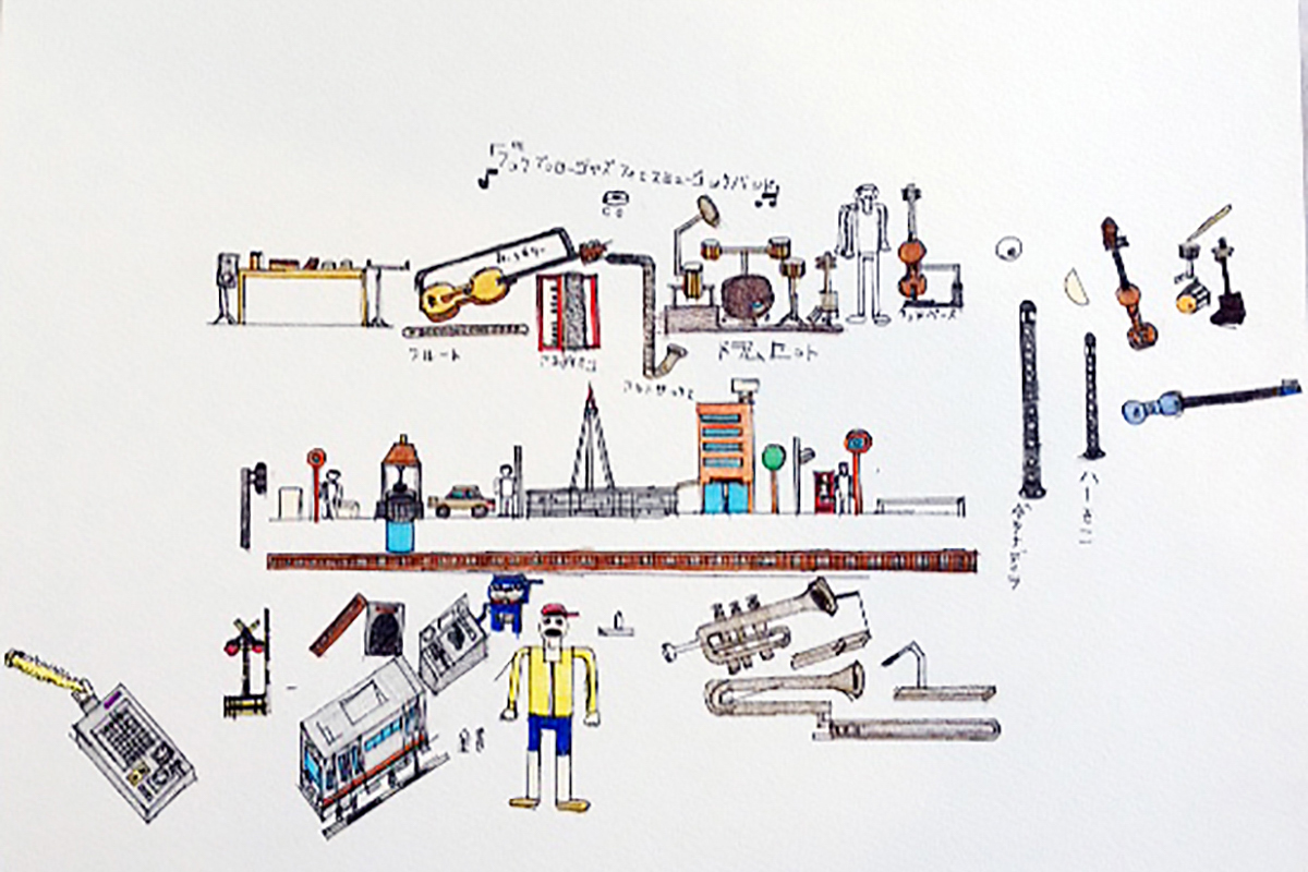 名前や形状だけでなく、音色も含めてあらゆる楽器を知っている。小さな体をくの字に折り曲げ作品に向かう。直線部分は定規を使い、曲線は両手でペンを握る。時に“エア演奏”も交え、食事も忘れるほどの集中力で仕事に向かっている。
