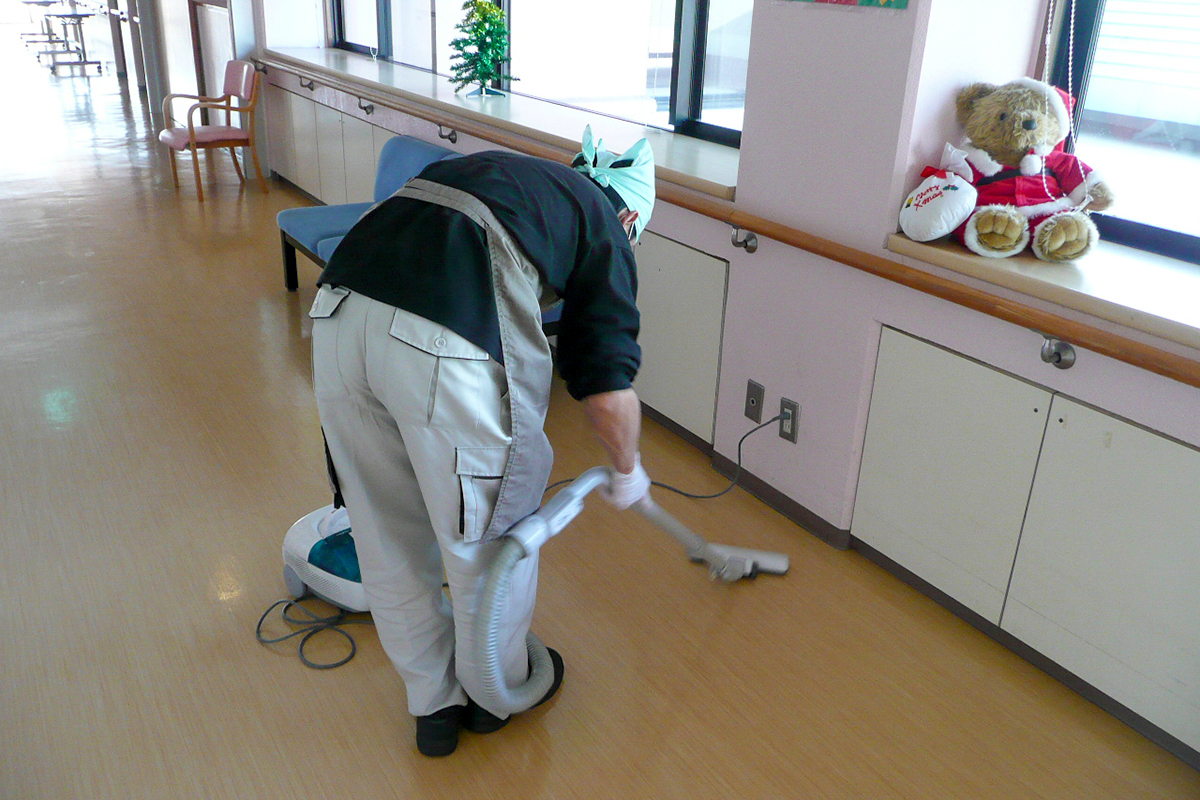 週2日、職員1名と利用者3名で近隣の高齢者施設の床やトイレ内の掃除を行っています。