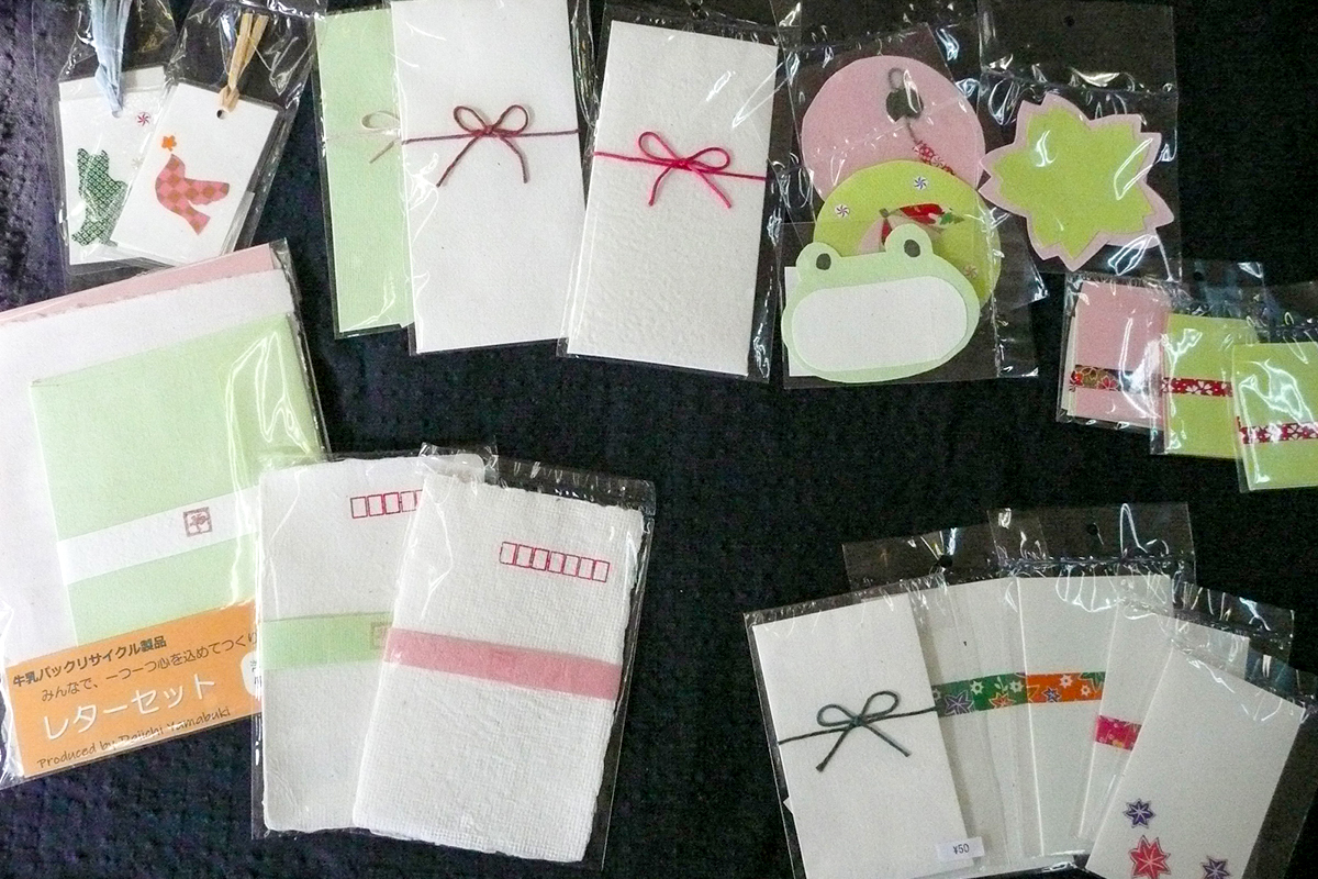 牛乳パックのパルプを再利用して製造しています。すべての工程が手作業で一枚一枚丁寧に仕上げています。