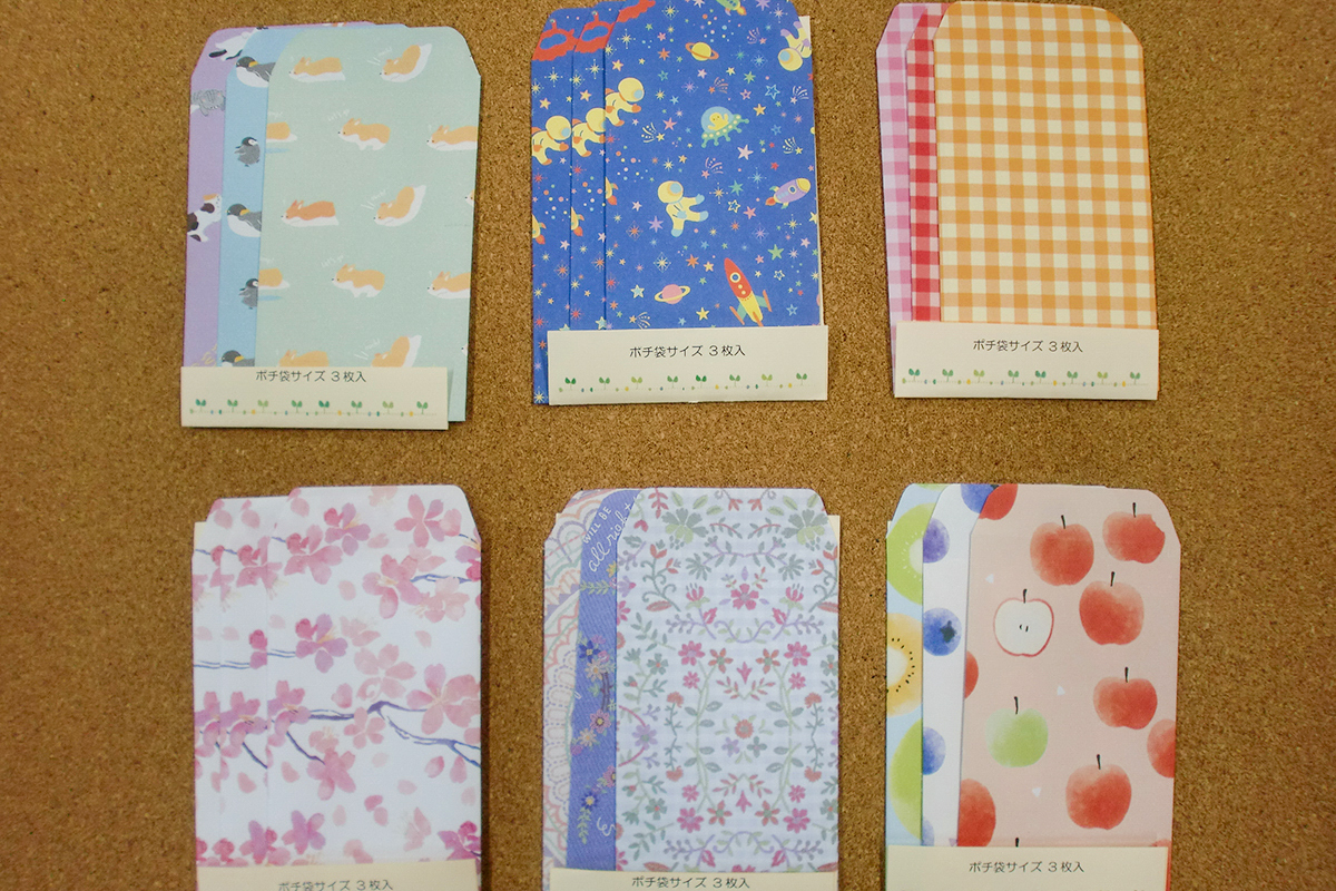 かわいい折り紙を使い、動物柄・和柄・ポップ柄色々な種類のポチ袋を用意しています。
